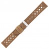 Material : Piel de vacuno Top Grain enceradaCaracterísticas : Plana, al corte, cosida.Medidas : 24 mm.Color : Marrón Color pespunte : Marrón Forro : Ternera Top GrainCierre : Hebilla de acero