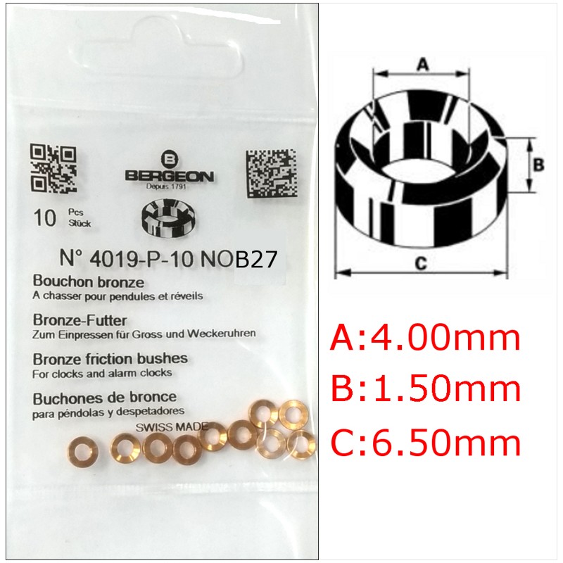 Dimensiones: A 4.00 mm B 1.50 mm C 6.50 mm